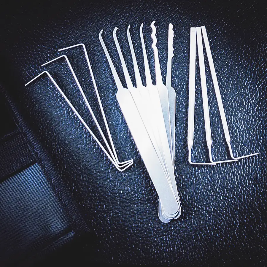 De Spirit set wordt ook geleverd met 6 tension wrenches van verschillende breedtes voor een perfecte controle over de slotkern. Daarnaast bevat de Spirit ook de populaire Tuxedo Case en past deze eenvoudig in je broekzak.