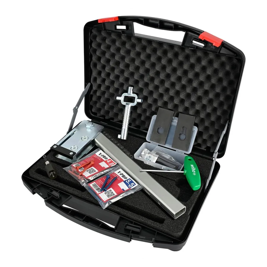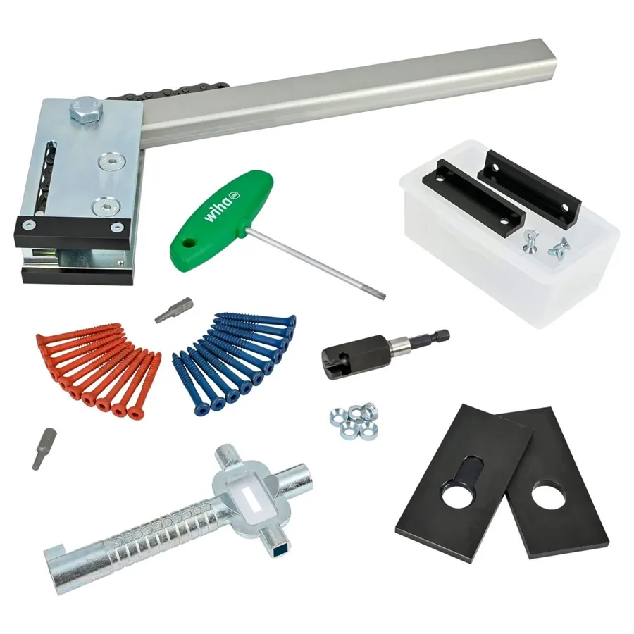De set bevat een Wiha Torx TX-20 sleutel voor het handmatig aandraaien van trekschroeven. Voor sneller werken zit er een SchraubFix bit-adapter in de set. Deze adapter gebruik je met een accuboormachine.